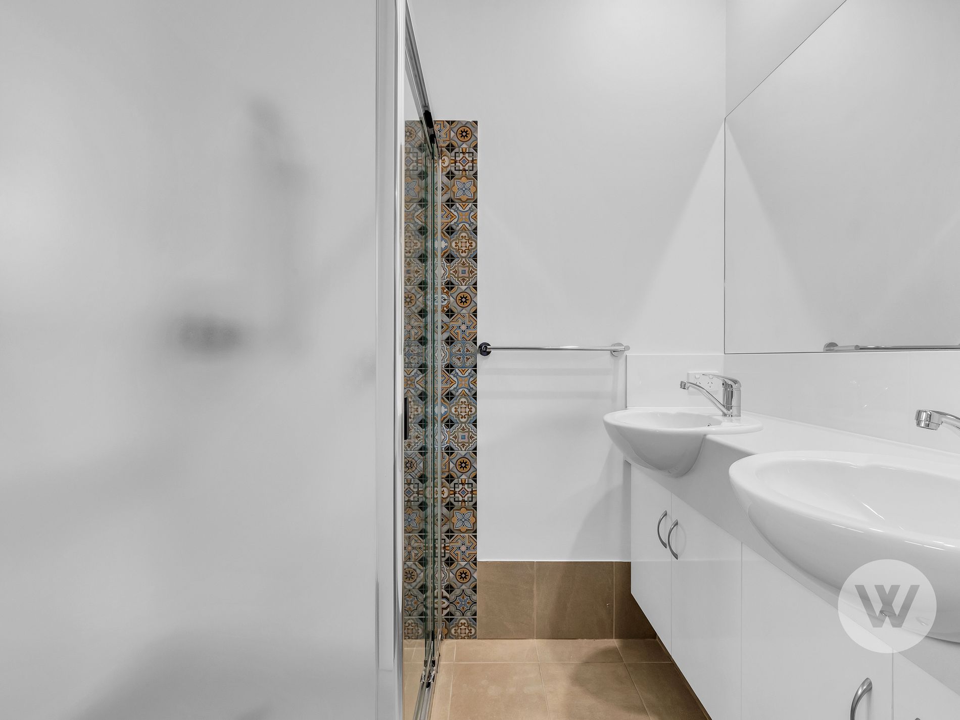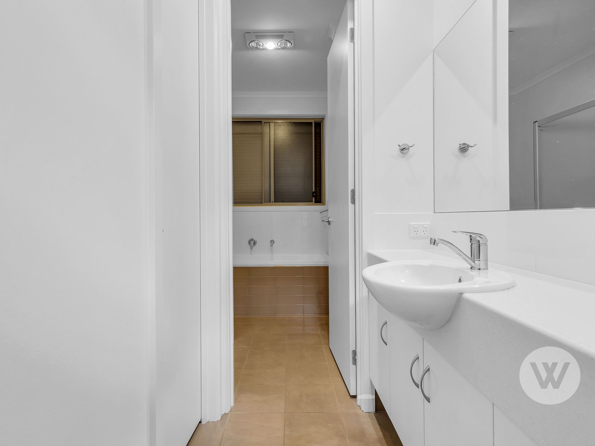 The master bedroom features a walk-in robe and a spacious ensuite with twin vanities, offering a touch of luxury. Two additional bedrooms, both with built-in robes, are serviced by a well-designed three-way bathroom with separate shower and toilet.